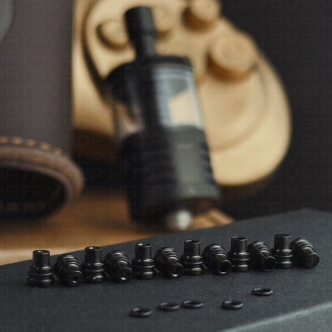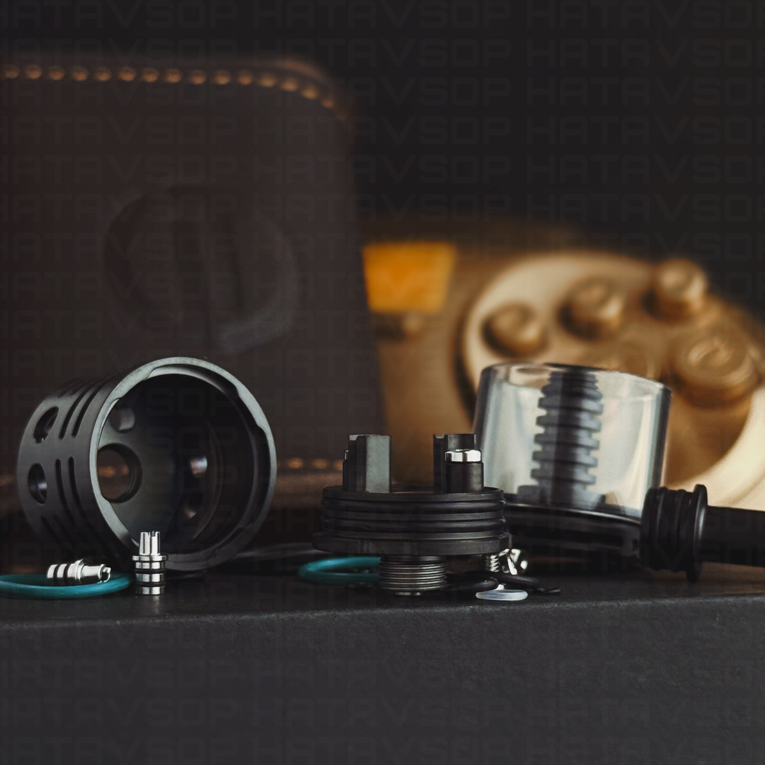 – 1x Force RTA V2 – 2x Bells – Air Pin* – 1x Drip Tip with Steel sleeve (pre-installed) – 1x Sleeve drip tip in Peek – 1x Slevve drip tip in Peek Black – 1x Spare Parts (O-rings and screws)