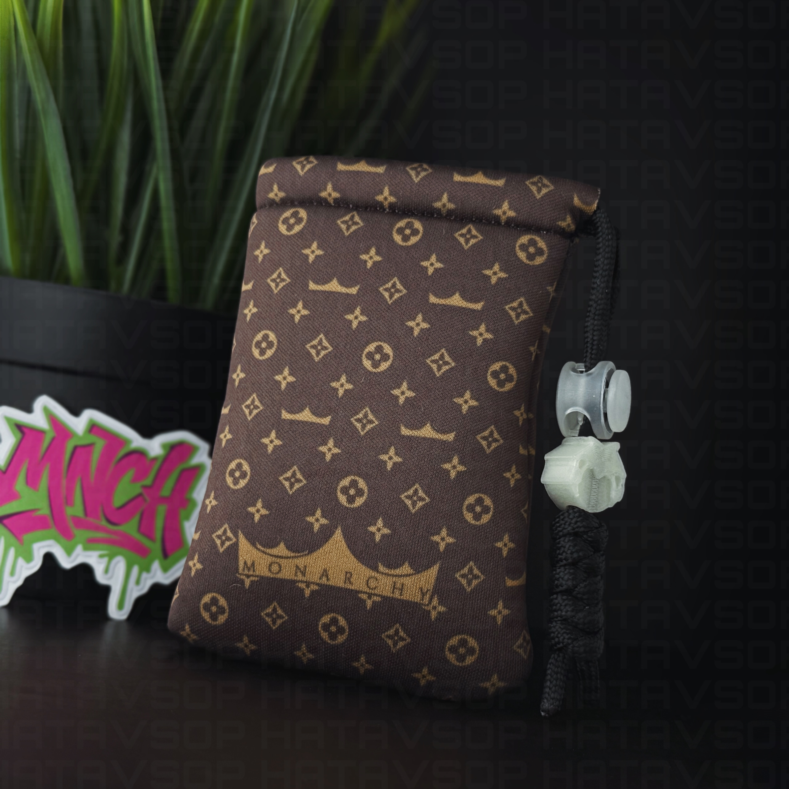 Neoprene fabric pouch - 3mm density - Fluorescent Lyonk Ornament Printed on Paracord.